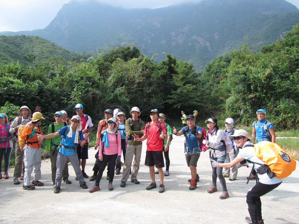 Borbing :: 馳騁百澗週四小組 - 東馬肚右坑 / 牛押山東崖 / 折雁台 / 雁谷 06/11/2014 :: 先來一張合照, 背景是馬鞍山, 東馬肚. 可見馬肚中的彌天, 斷鳶及螺旋等壁. 是日目標是相右的牛押山東崖 IMG_2697