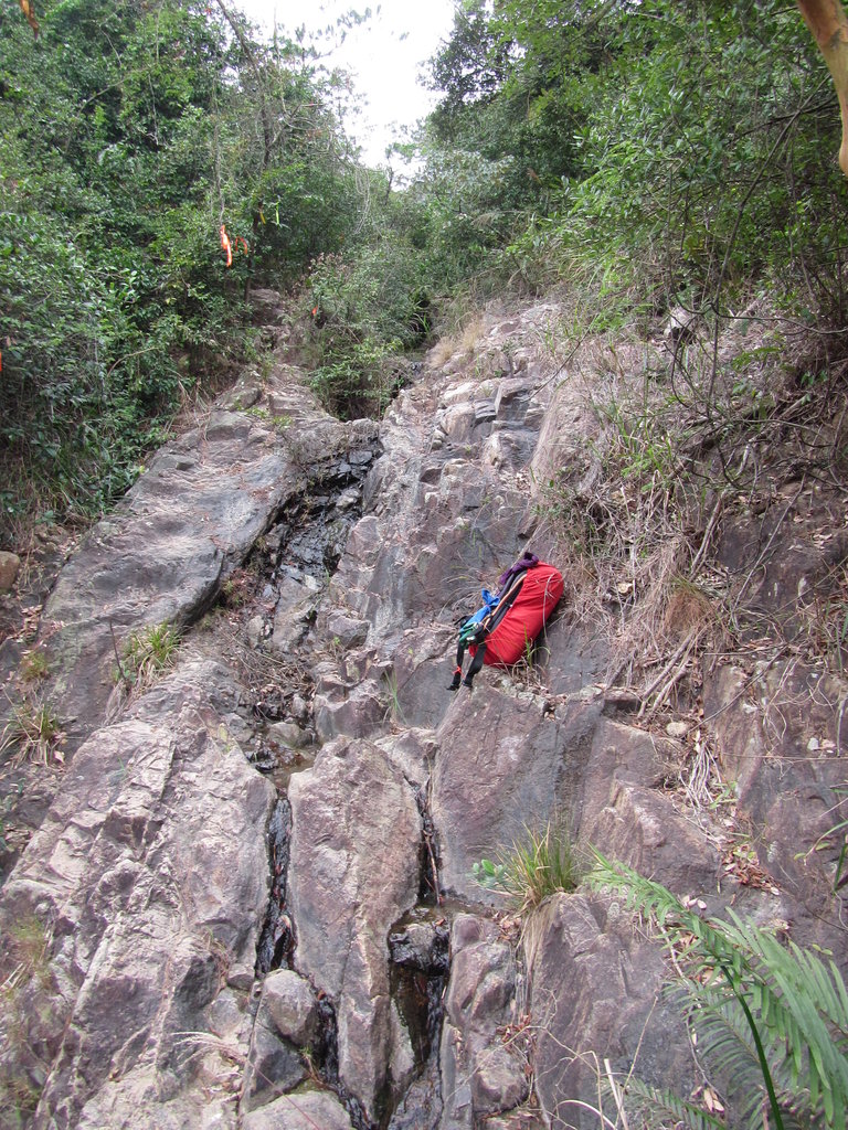 Borbing :: 馳騁百澗週四小組 - 彌石散石澗 / 彌閘石澗 18/12/2014 :: 右望見一支澗, 有布條路標, 即是有人行過啦 IMG_4275