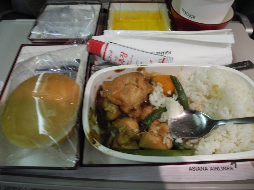 21號零晨15分經24號閘口登上韓亞航空班機OZ746, 坐位39D&E, 機上提供Supper, 有雞飯和磨菇粥兩欵可選擇, 當然要飯啦 DSCN0005