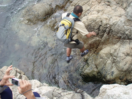 Borbing :: 駿騏 - 鷓鴣棕林上洋 13/05/2007 :: 這裏水漲難過, 要嘛像這樣跳過去, 要不就濕腳(其實會係至腰)澗水過去, 不過重可以向上打竹林過, 不過竹林真係好好好密呀! 有勞各位開林高手 P5136306