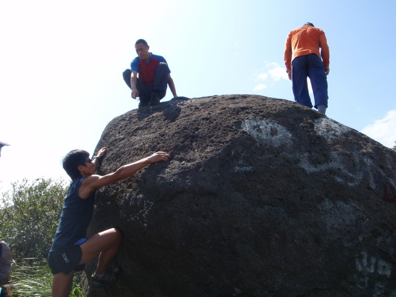 路邊有一大石, 高手們當然要玩玩啦 PA090270