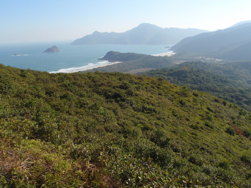 下望大灣(左)與鹹田灣(右)及遠處的睇魚岩頂(左)及西灣山(右) PC020234