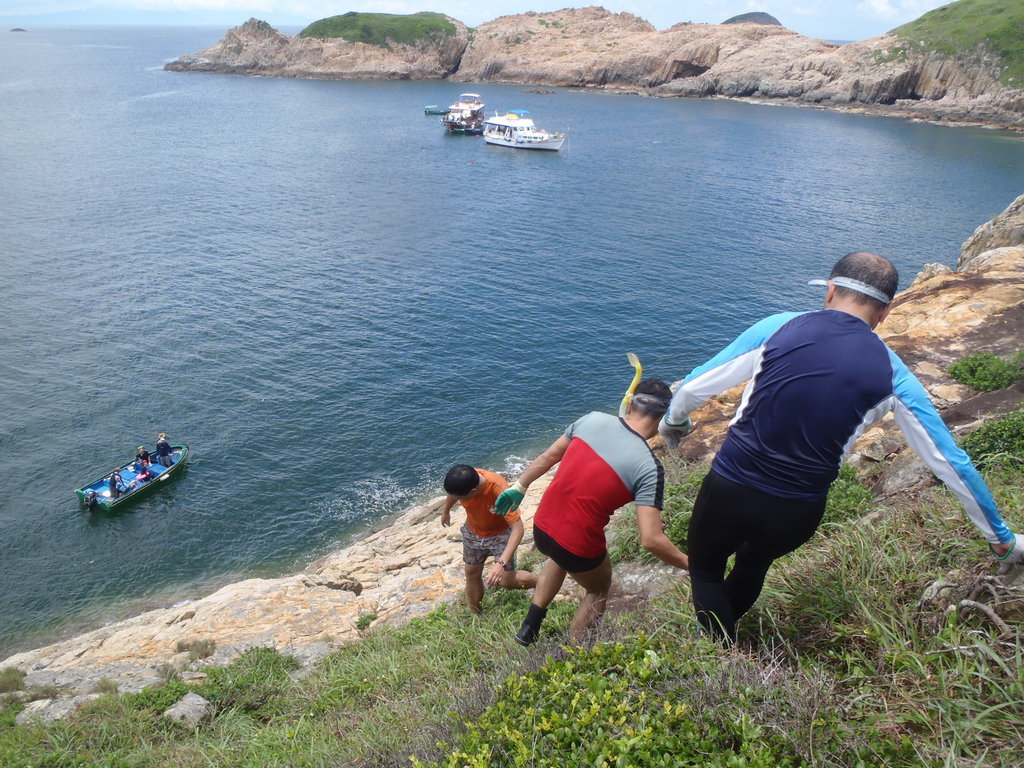 果洲灣. 駁艇在下面等住接我地上遊艇, 快快落去lu P6220148