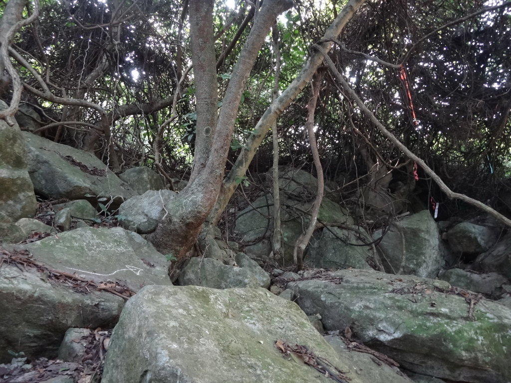 大石旁的布條路標, 而且還有馳騁箭咀指示, 無有錯啦 DSC01141