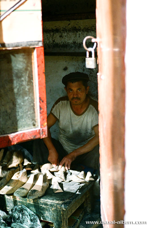 :: Xinjiang Day 14 - 喀什 Kashgar :: while we walked down the street, we saw more and more shopkeepers. this one does shoes.