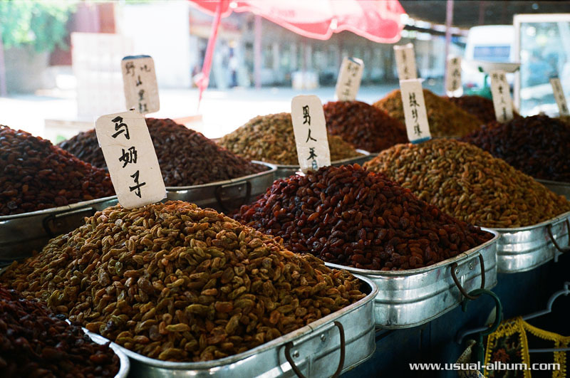 :: Xinjiang Day 19 - 吐魯番 Turpan --烏老木齊 Urumqi :: different kinds of 葡萄干 for sales outside of 苏公塔.