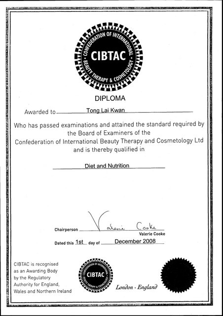 SYLVIA :: Cert. :: 減肥及營養証書
