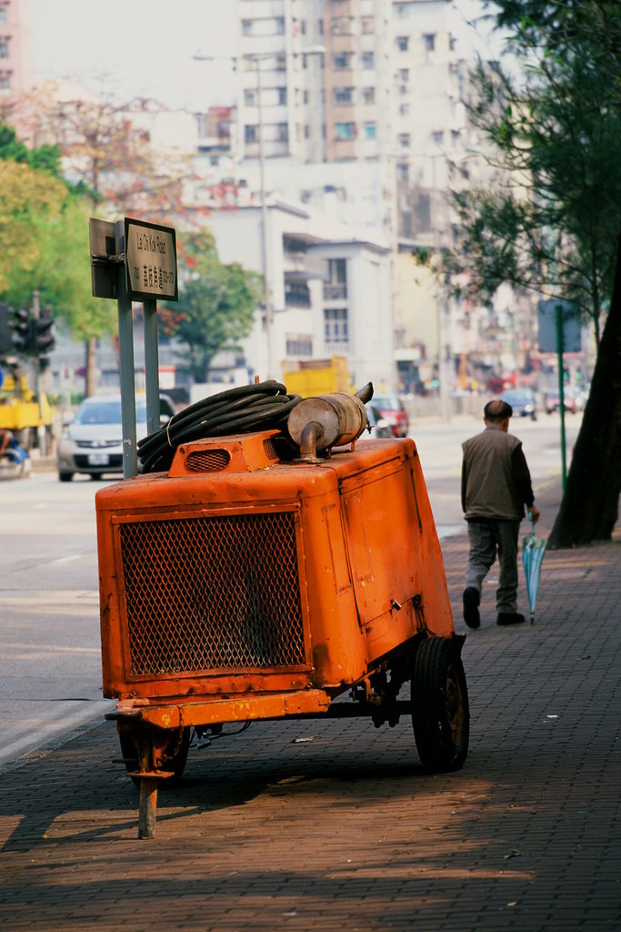 This is an OLD AIR COMPRESSOR. Use to provided compressed air for DRILLING MACHINES. It is a very old model, back in my childhood time. So OLD TO OLD, notice the old man in background. I love the colour Tone of this SUPER SLIDE "FUJI VELVIA ". You should try one for your X-700 too.
