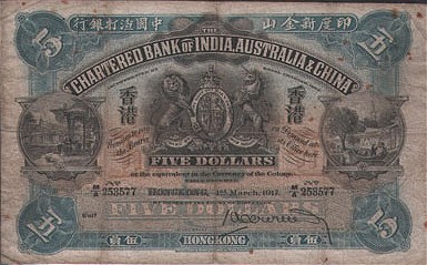 Alan C :: Hong Kong Banknote 266 photos :: HongKongP41-5Dollars-1912-donated_f