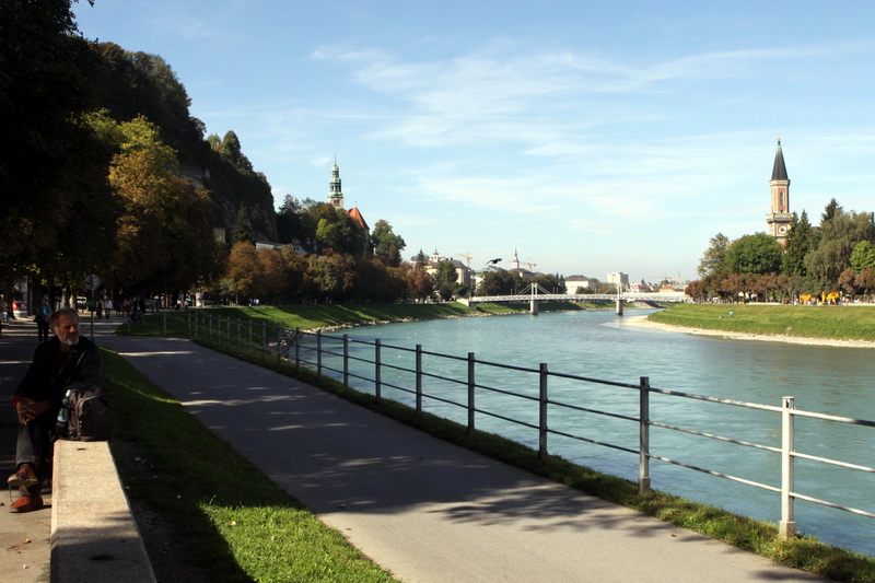 :: Day 12 : Salzburg/薩爾斯堡 (格特萊德街、大教堂、聖彼得修道院、薩爾斯堡城堡、海布倫宮、水機關、惡作劇噴泉) :: 吃飽飽, 就步行到 Makartsteg (馬克小橋)