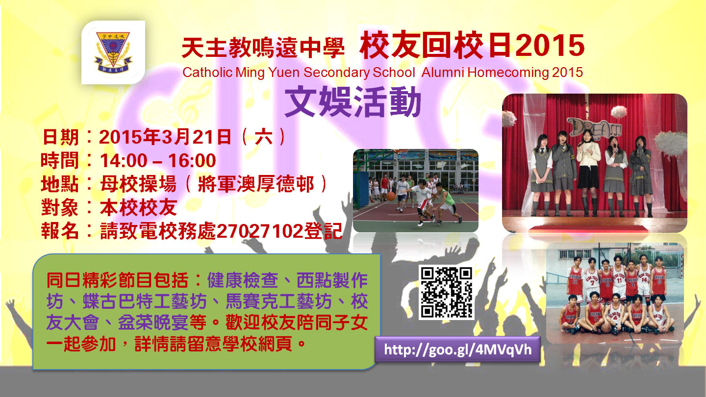 Catholic Ming Yuen Secondary School (old CMYSS album) :: 20150311-校友回校日_宣傳資料 :: 20150311-06_recreation_poster_Alumni-01