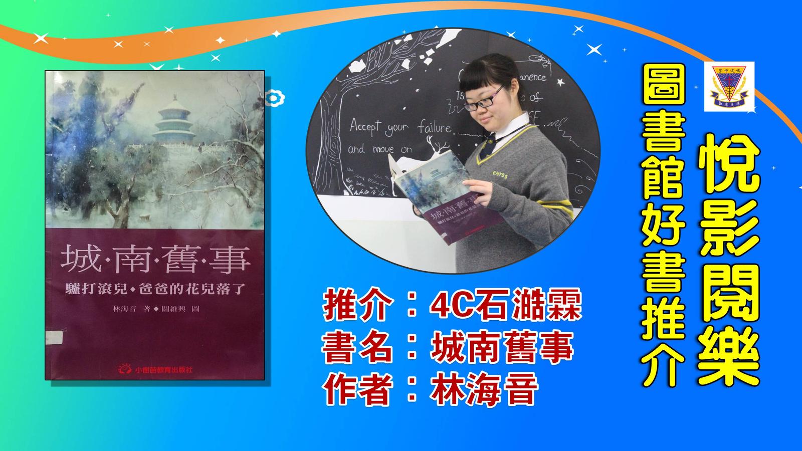 推介同學:4C石澔霖 書 名:城南舊事 作 者:林海音 分享日期:2016年03月09日