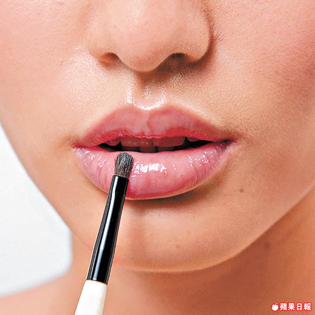 唇妝偏向簡單,帶粉紅唇妝最能突出綠色煙薰眼層次美