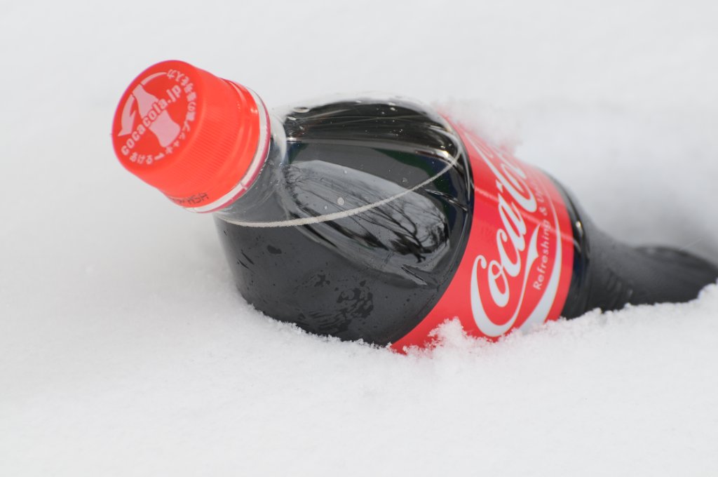 口喝好想買飲品-在駅外汽水機買了可樂-怕唔夠凍唔緊要-放在雪裡雪一陣喇~haha