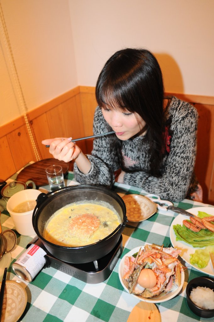 Danny & KaKi :: 知床Utoro流冰漫步&Villa晚餐 :: 火鍋後那些蛋,麵豉汁和一碗飯是怎煮的呢?這resort的主人教我們煮成粥~