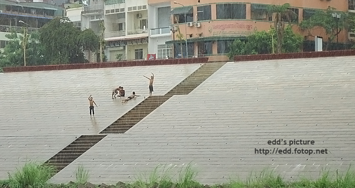 東南亞地區時有驟雨, 在白色河遊船河期間落大驟雨, 令原本大熱天的高溫變得涼快.