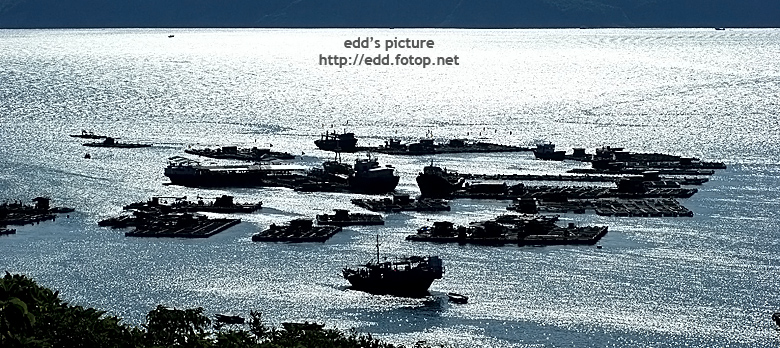 斜陽倒照在海面上, 輕按快門, 魚排的剪影成了一個回懷記錄.