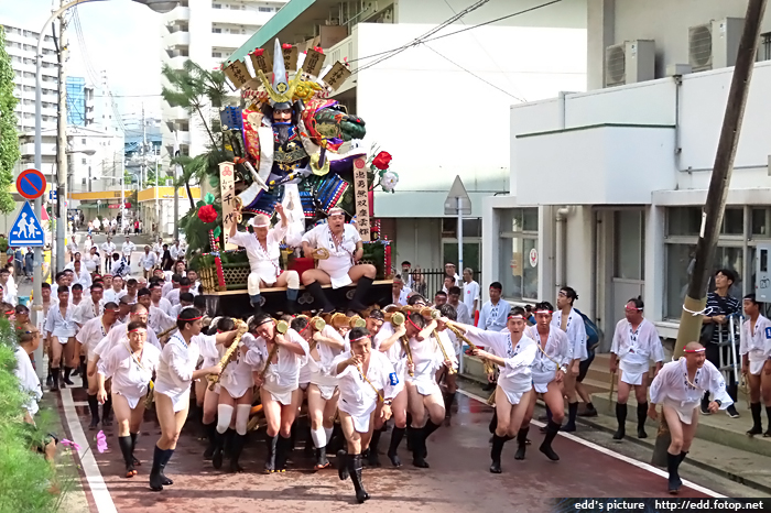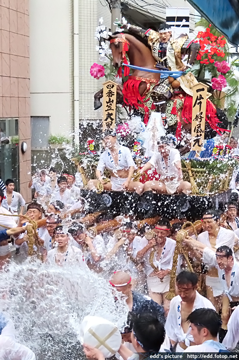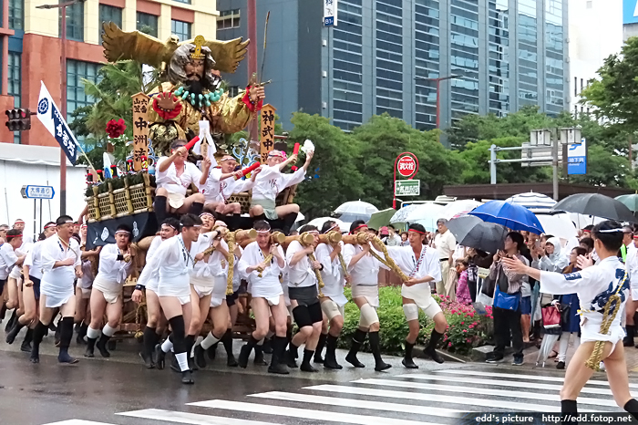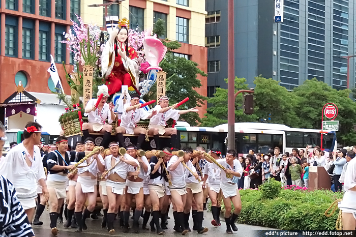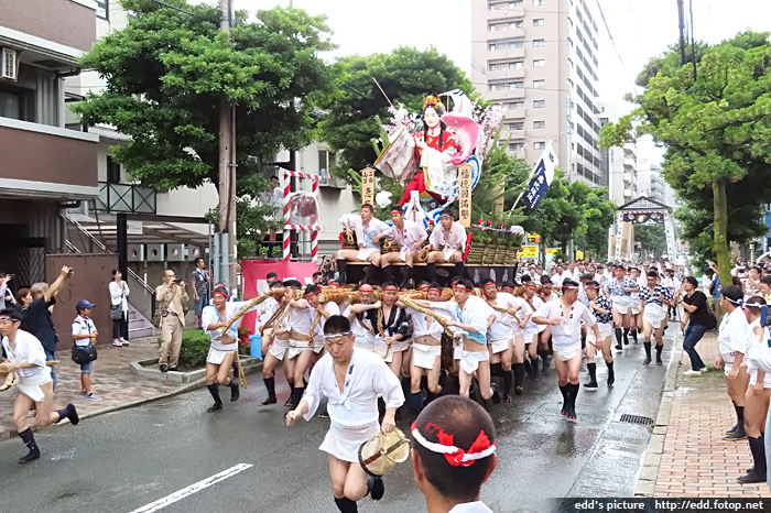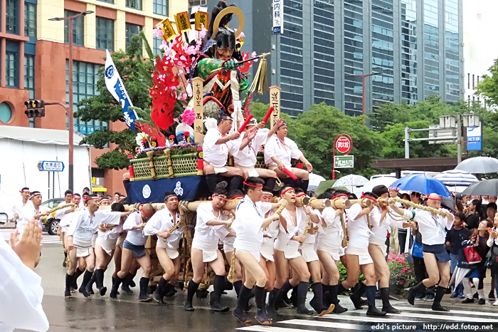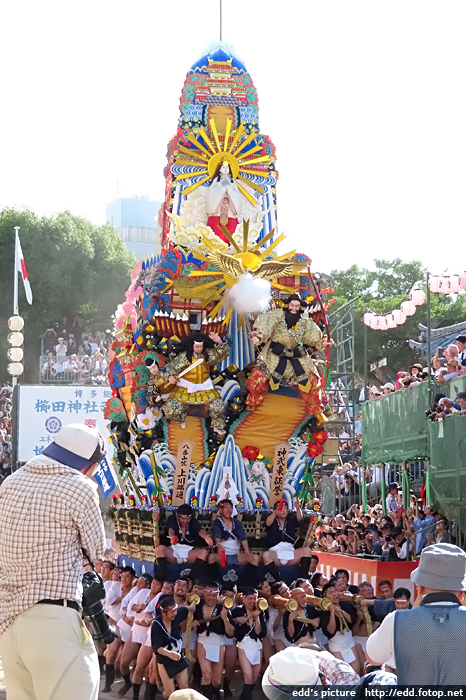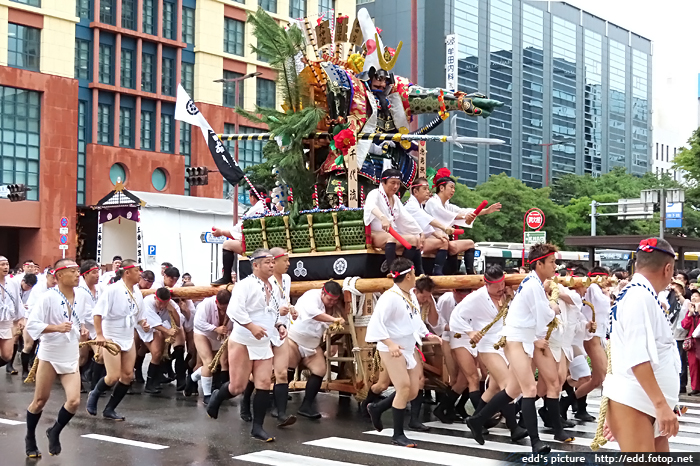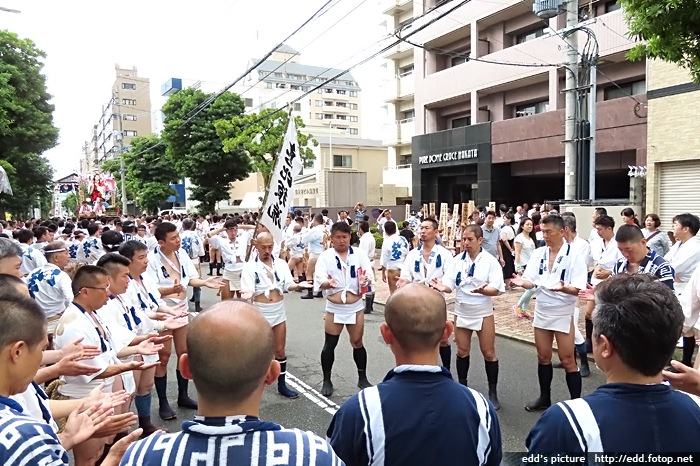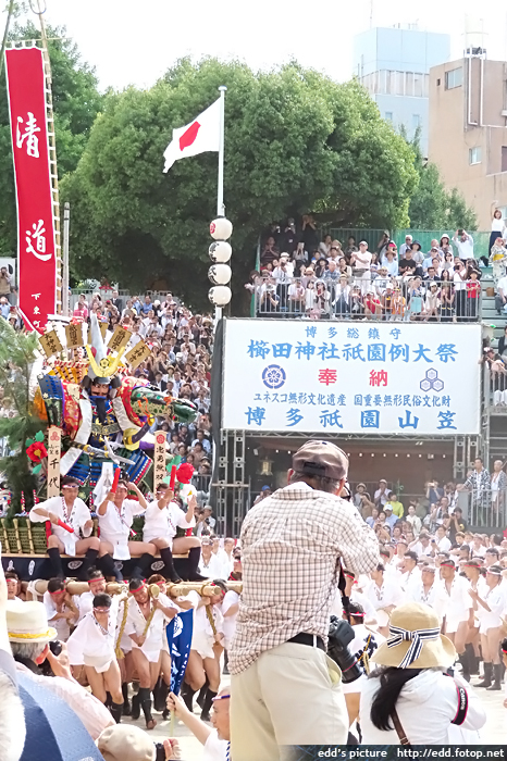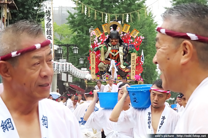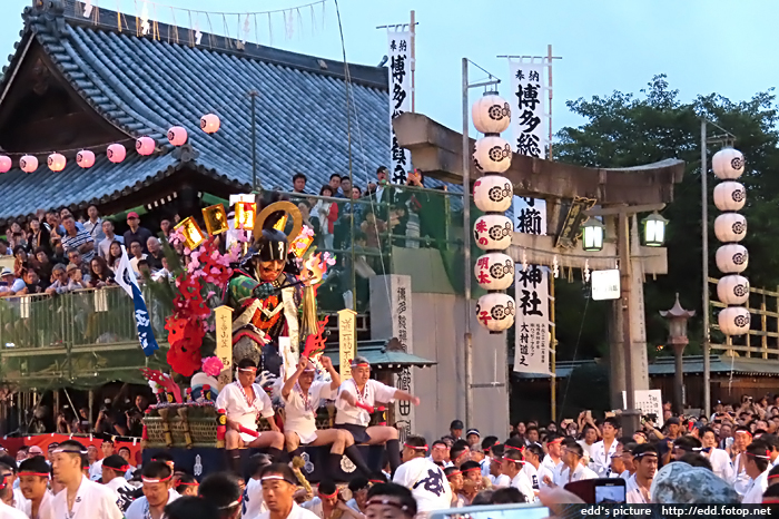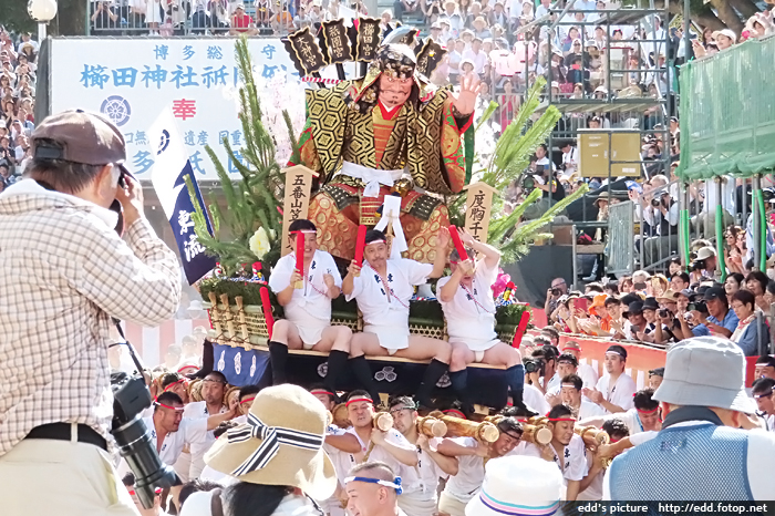 >> 每年7月01-15日,福岡會舉辦博多祇園祭,重頭戲在15日,早上 0459,於櫛田神社舉行的追山笠。