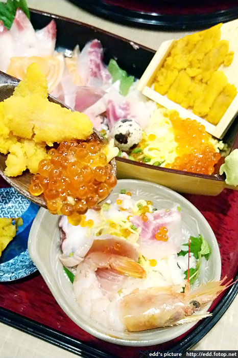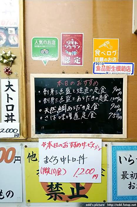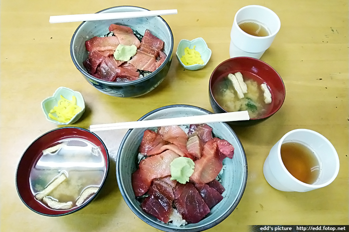 然後到柳橋連合市場,再幫襯吉田鮮魚店,兩碗中吞拿魚腩飯,合計2400日元,食物上桌時,