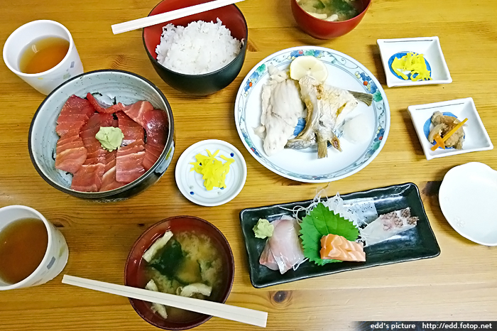 幫襯吉田鮮魚店,刺身配烤魚定食 900日元,中吞拿魚腩飯 1200日元,好吃,CP值高。