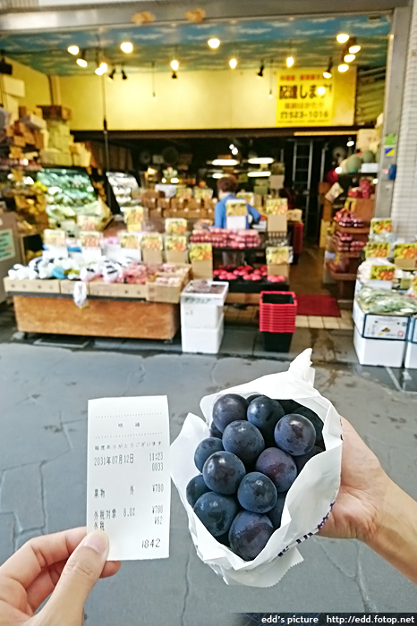 在一間水果店購買巨峰提子,842日元。