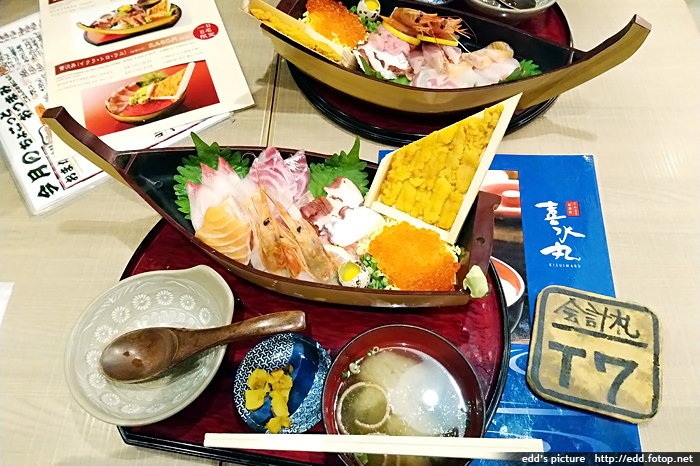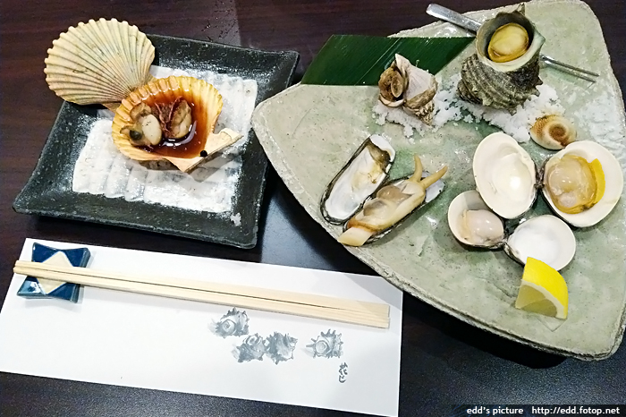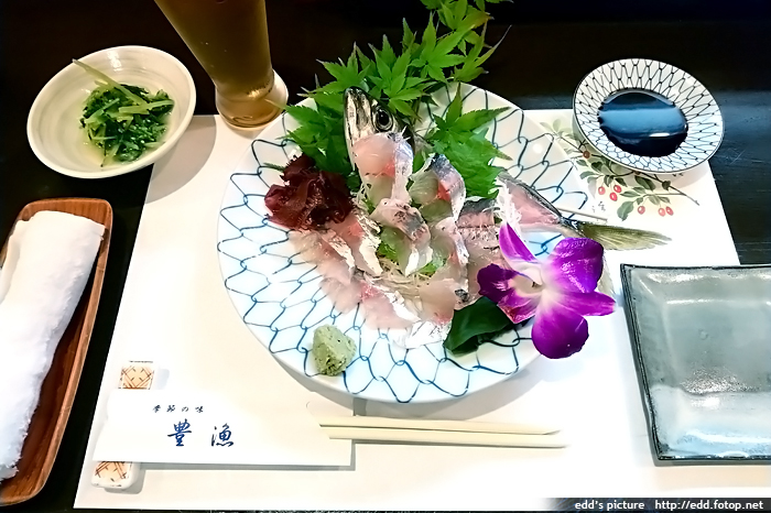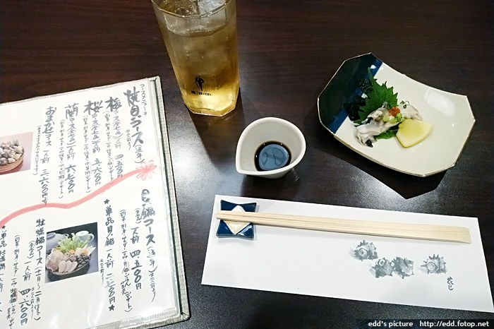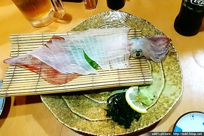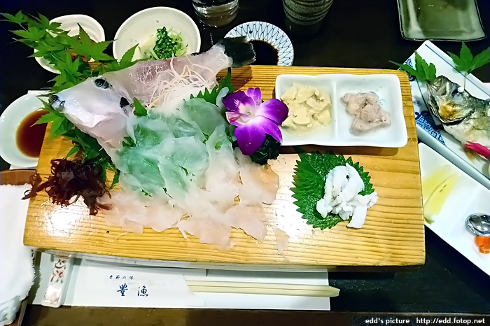 6pm 到酒店附近的活魚專門店吃晚飯,我們是當晚首批客人,由於是小店,只有手寫日文餐牌,