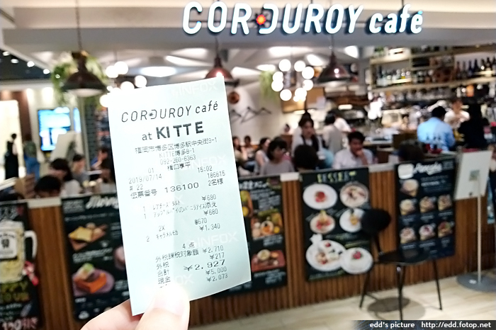 乘坐巴士回程博多站,到旁邊0101商場地庫 Kitte 飲食樓層的 Corduroy Cafe 吃下午茶。
