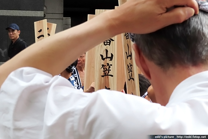 稍作梳洗,小休片刻,出發乘坐地下鐵前往祇園站,到櫛田神社,觀看西流山笠流舁(競走練習),5pm 準時出陣。