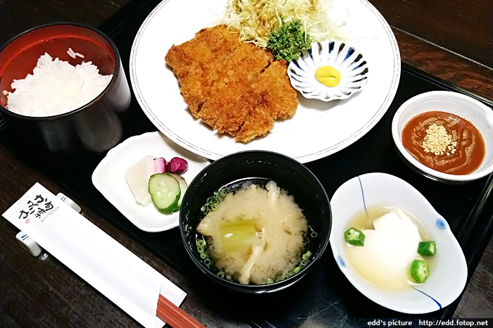 晚餐吃吉列豬排飯,入座時間剛好在晚上8時後的消夜特價時段,兩份定食,份量多,滿好吃,椰菜任添。