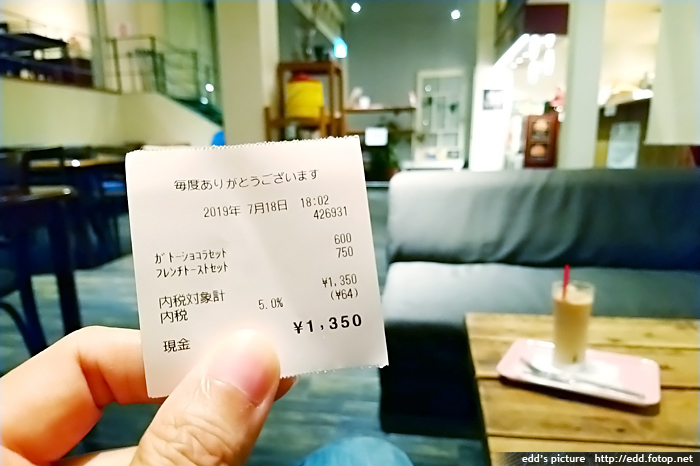 合計1350日元。店內環境舒適,樓底高,我們坐了一段相當長的時間。
