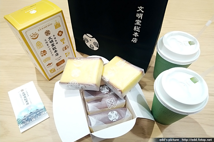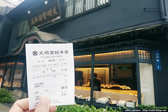 到文明堂總本店購買長崎名產蜂蜜蛋糕 810日元,堂食只有沒有飲品售賣,