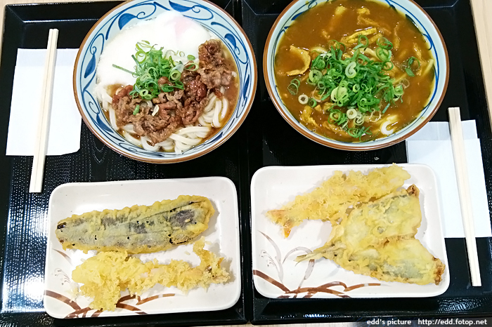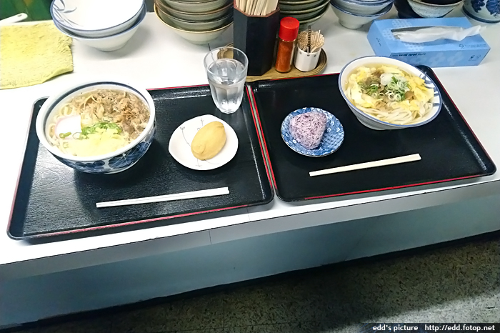 兩份烏冬定食,配紫米飯糰和腐皮飯糰,好吃,合計1000日元,平靚正。