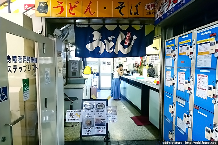 在巴士總站內的立食烏冬湯麵店醫肚。