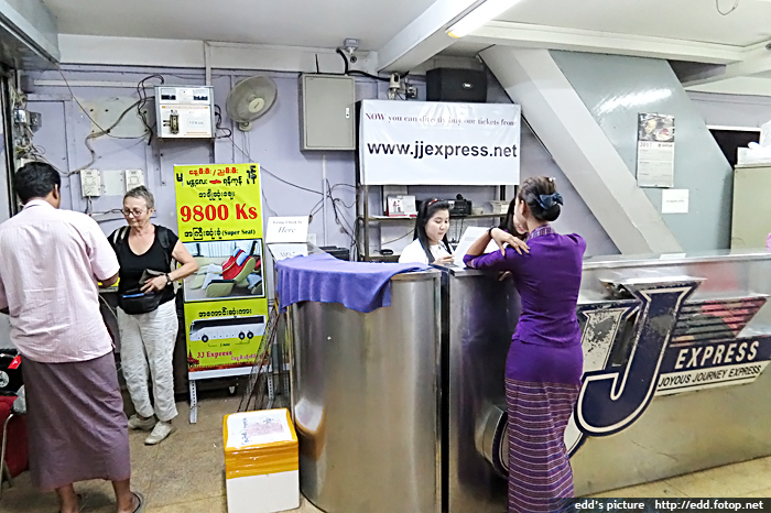 預訂巴士車票則由店內櫃檯負責。緬甸的長途巴士公司有幾間,票價相差無幾,當中以 JJ-express 的口碑最好,