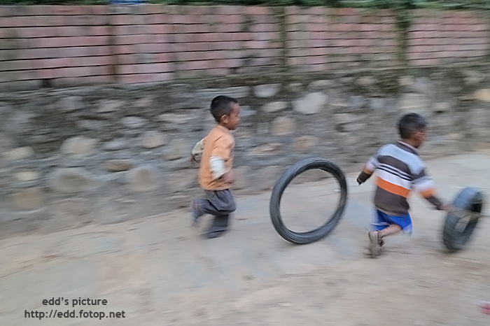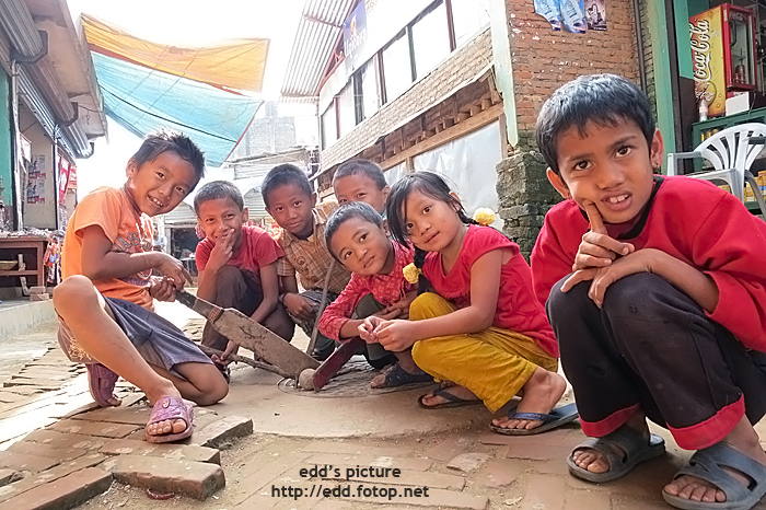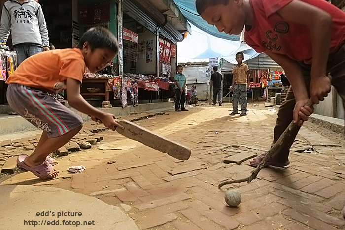 餐後在 Bandipur 閒遊, 遇見一班打波子的小朋友, 尼泊爾語稱之 Guchha.
