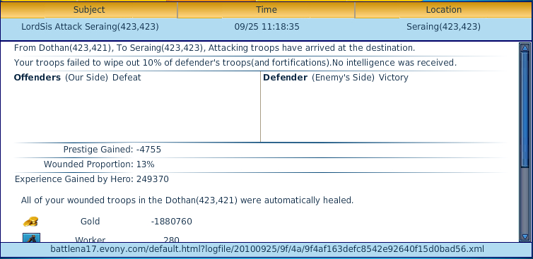 War Report to Evony HC Attack