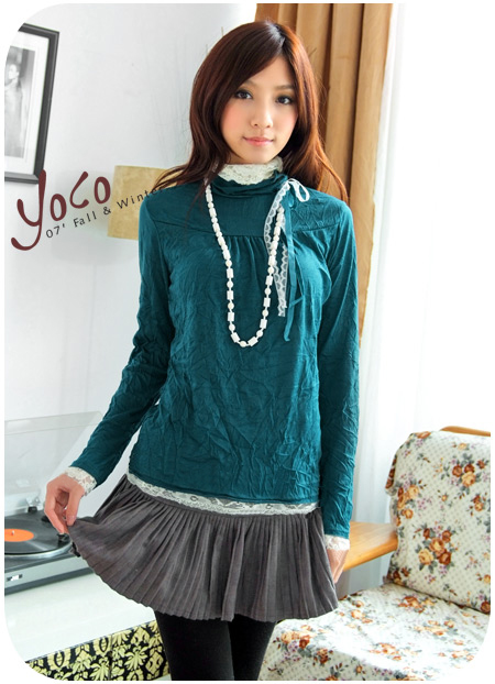 beauty :: 上衣 :: 3-8-6105喱士蝴蝶結上衣(藍色) 質料: 棉 尺寸: 衣長 56cm 胸圍86cm 袖長57cm 肩寬34cm 售價$58