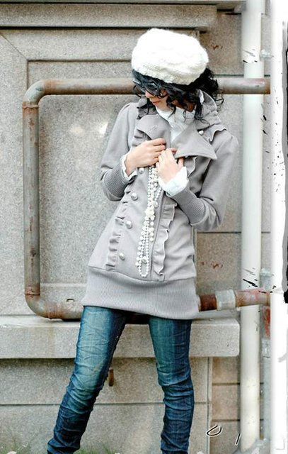 beauty :: 針織棉/夾棉外套 :: 2-9094-反領鈕扣外套(灰) 質料﹕絨料 尺寸﹕肩寛38cm 胸闊86cm 衣長77cm 袖長55cm 售﹕$78