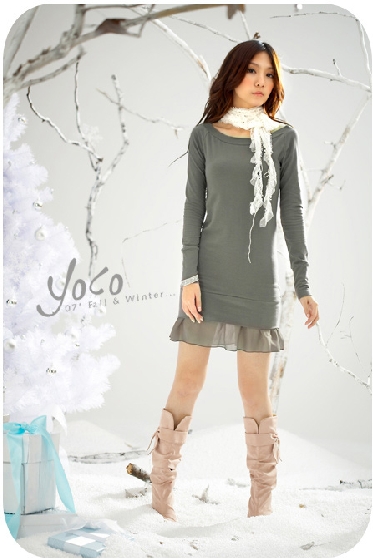 1248-32#新年新款洋裝(灰色) 質料﹕萊卡+雪紡 尺碼:肩寬39CM 胸圍90--100 衣長74CM 袖長56CM