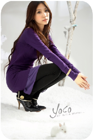 1248-32#新年新款洋裝(紫色) 質料﹕萊卡+雪紡 尺碼:肩寬39CM 胸圍90--100 衣長74CM 袖長56CM