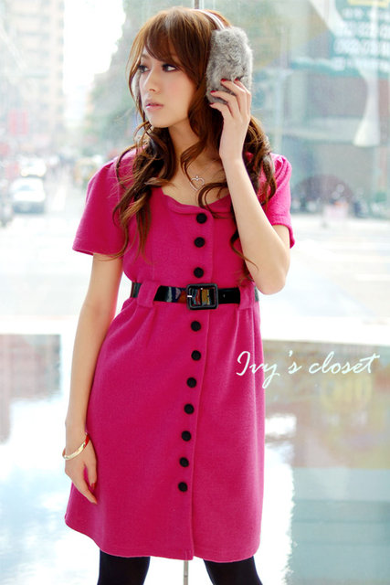 beauty :: 連衣裙款/裙衣款上衣 :: 3-2-580-123玫紅色 面料﹕羅馬呢 配皮帶 尺寸:衣長86cm 胸圍84cm 袖長20cm 肩寬33cm