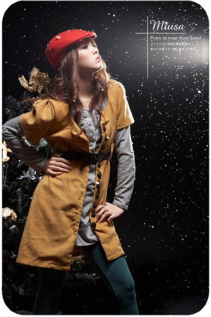 3-2-580-123黃色 面料﹕羅馬呢 配皮帶 尺寸:衣長86cm 胸圍84cm 袖長20cm 肩寬33cm