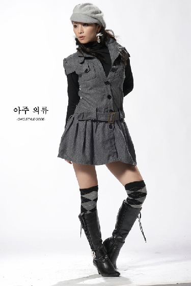 YL6017-無袖連身百褶裙(灰色) 質料﹕毛尼 尺碼:均碼 胸圍84cm 肩寬40cm 衣長80cm 售價﹕$89