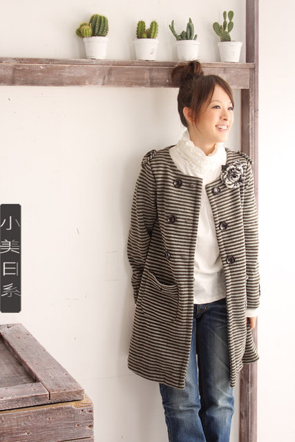beauty :: 厚褸/長褸款 :: 3-9-080黑白條紋外套 質料﹕加厚針織混毛料 尺寸: 衣長80cm 胸圍90cm 袖長53cm 肩宽33cm 售﹕$129