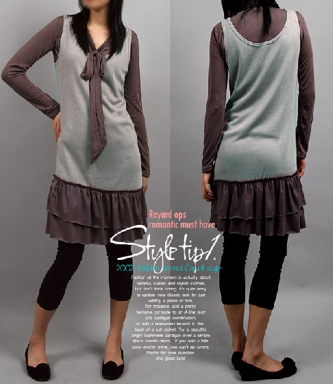 7283-時尚荷葉擺裙(灰色(配咖啡下擺) 質料﹕純棉拉架 尺碼(均碼):肩寬38cm 胸圍86-90cm 售價﹕$59