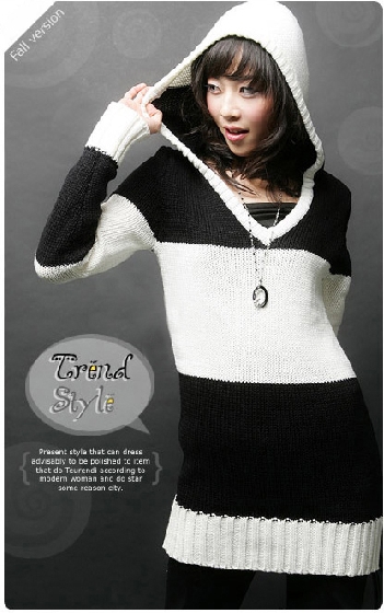 beauty :: 冷織/針織/羊毛絨上衣 :: e8004-帶帽毛衣(黑白條紋) 質料﹕ 針織 參考尺寸(均碼): 胸圍95CM 袖長63CM 衣長72CM 售價﹕$89