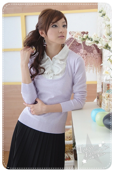 beauty :: 冷織/針織/羊毛絨上衣 :: 3-6-909假兩件套上衣(紫色) 質料﹕毛織 尺寸﹕衣長53cm 胸圍86cm 袖長55cm 肩寛40cm 售價﹕$80