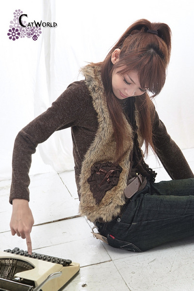 beauty :: 背心外套 :: 3-9-863(側面)兔毛背心+针黹高领2件套可拆分(咖啡色) 尺寸﹕衣長52CM 胸圍82CM 袖長57CM 肩寛38CM 售﹕$85