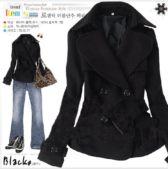 3417-韓版短褸 (黑)面料:混合羊毛,SML 尺碼:SML 三碼 S:胸闊92CM 衣長59CM 袖長55CM 肩闊39CM M:胸闊96CM 衣60CM 袖長56CM 肩闊40CM L:胸闊100CM 衣長61CM 袖長57CM 肩闊41CM 售$108