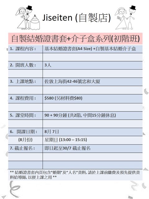 8月份-自製婚證書套+介子盒系列(初班)